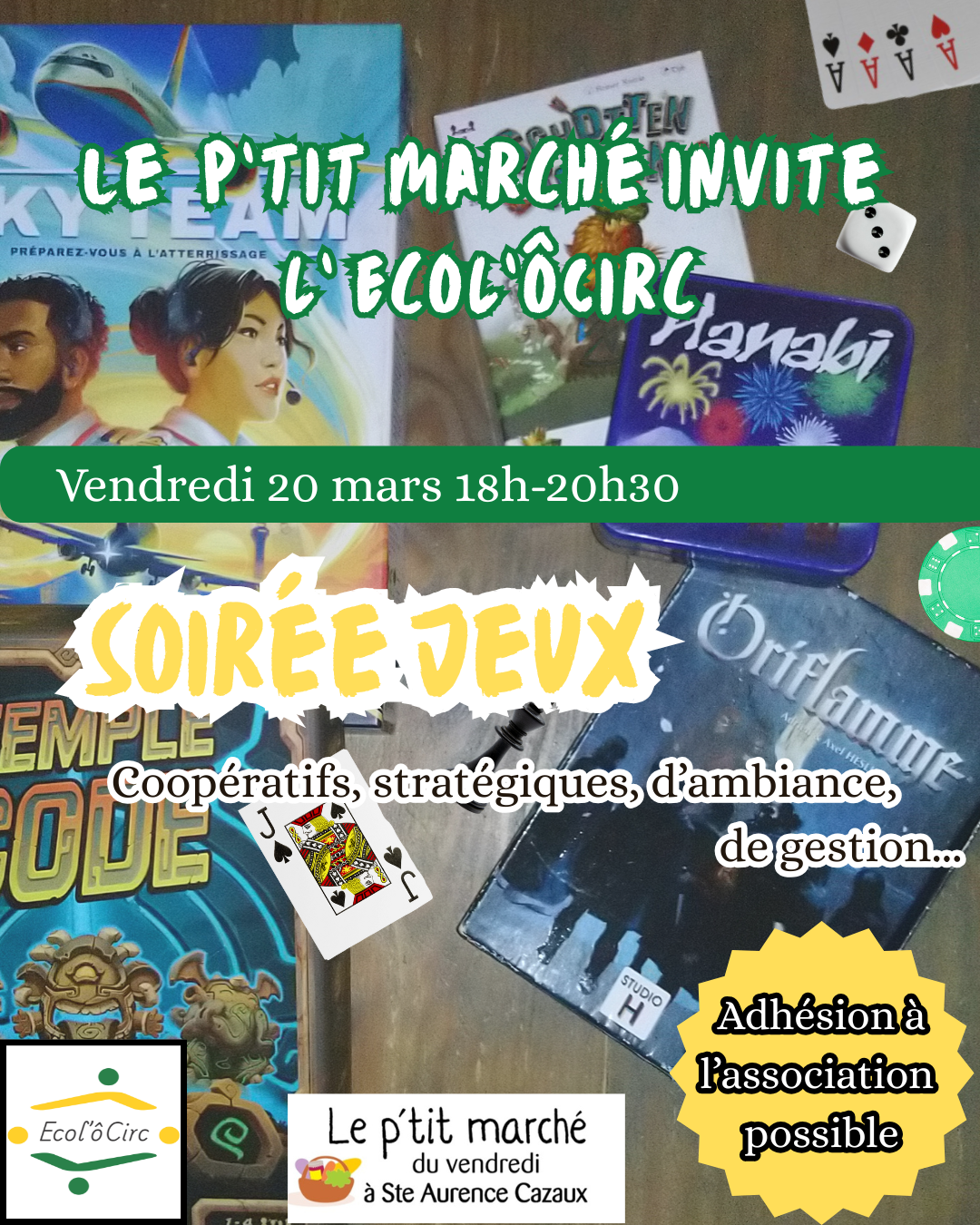 De 18h à 20h30, l’Association Écol’ôCirc de Ste Dode vient nous proposer une soirée jeux.